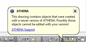 From the version ATHENA 2015, information held in the form of a speech balloon appears when you open a drawing which contains objects from a later ATHENA version.