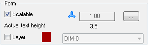 Switches the scalability of the object on. With scalability switched on the label scale of the current section (model or layout viewport) is used to control the size of the label. With scalability deactivated, you can specify the current scale factor in the input field.