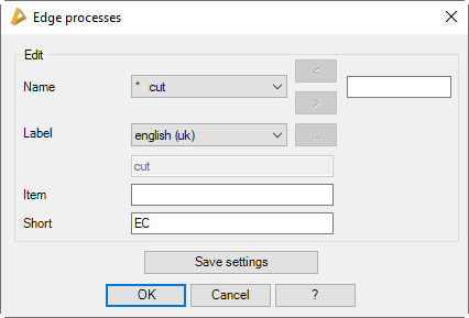In the pick list all available edge processes are displayed. Enter a name into the input field at the top right to create a new edge process and then click the [<] button. Click the Remove button to delete the marked process. Processes specified by the system are marked with an * and cannot be removed.
