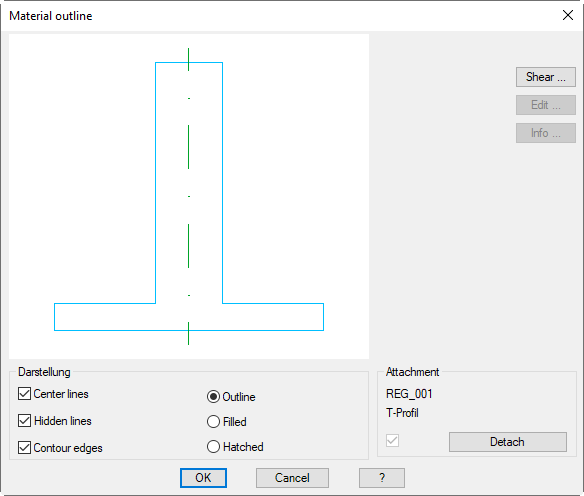 Dialog box Free semi-finished product is displayed and you can modify their properties. Outline changes are also possible here.