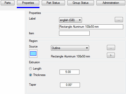Starts a dialog box in dependence of the selected source in order to describe the outline properties.