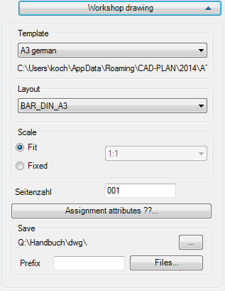 Defines the file prefix for the workshop drawings. The file name comprises: the prefix, job designation and part number from the positioning. If no positioning has been carried out, the file name is generated automatically.