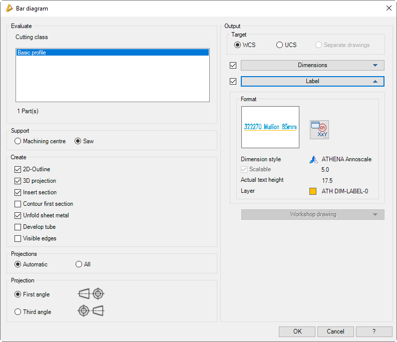 If you quit the dialog box with OK, the bar diagrams are generated. If they generate workshop drawings, they are automatically saved. If you insert the bar diagrams into the WCS or UCS of the drawing, the same input request follows as described in Section Bar diagram according to job.