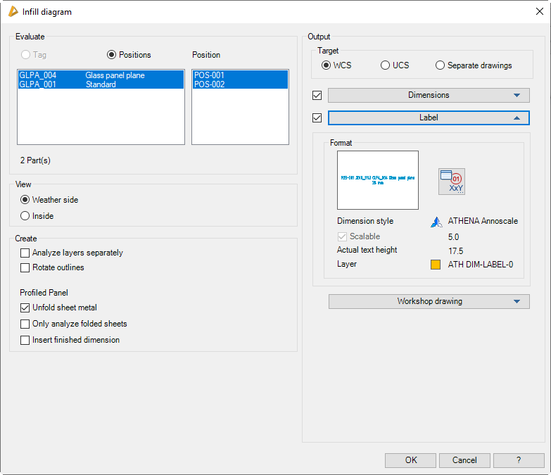 Produces the diagrams in separate drawings for each infill or layer. You can carry out settings for the file (name, storage location, etc.) in the Drop-down menu Workshop drawing.