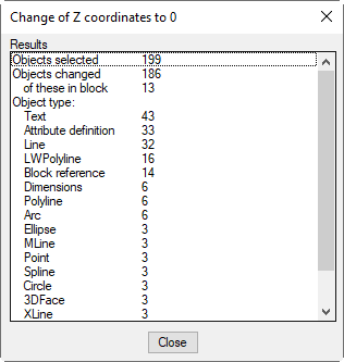 Dialog box Change of Z coordinates to 0