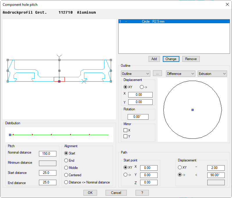 Defines the hole pitch for components of bar assemblies. A hole pitch is regular editing process for a component. One example is an bracket which can have regular hole spacing.
