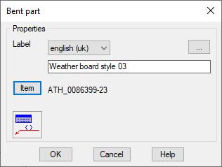 Defines the language-dependent designation of the bent part. To do this, select a language from the list and add the appropriate text in the line below.