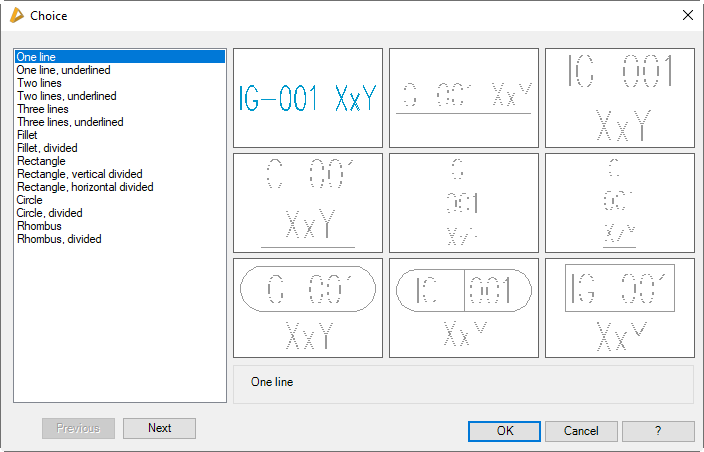 Above the preview there is a selection menu where you can choose between various position symbols. You can either select a symbol directly from the list or open the Dialog box Selection by clicking the symbol preview and selecting a symbol there.