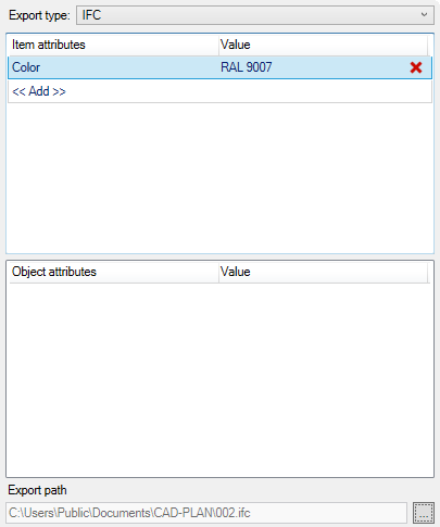 Item attributes can be assigned directly to the selected objects. With <<Add>> you can create a new attribute with the corresponding value. You can change existing attributes by direct cell editing.