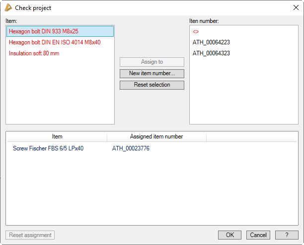 If different positions (e.g. a screw and a nut) have been assigned the same item number, problems may arise during the evaluation. It can lead to confusion, especially when exporting to ERP software.