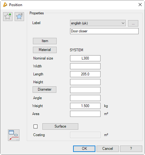 Here you can specify a language-dependent label for the position. You select a language from the list and add the appropriate text in the line below. You proceed like this for each language.