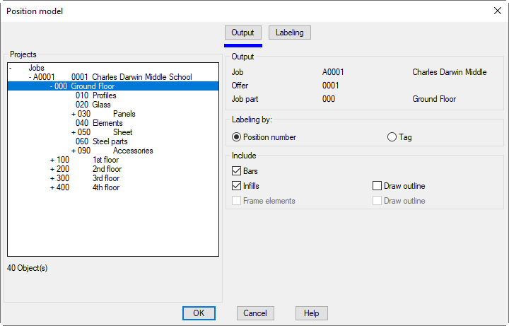 To create a position model, the parts must have been allocated to a job with the Project browser.