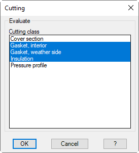 This input request is repeated until you conclude the object selection by pressing the Enter key. Then the Dialog box Cutting is shown: