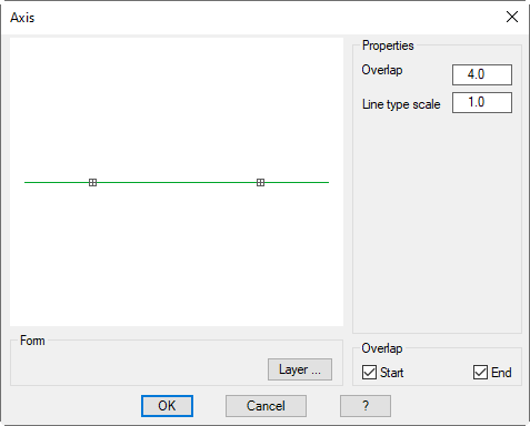 Dialog box Layer assignment. The default layer for the axis line may be overridden here. You will find further information in the section