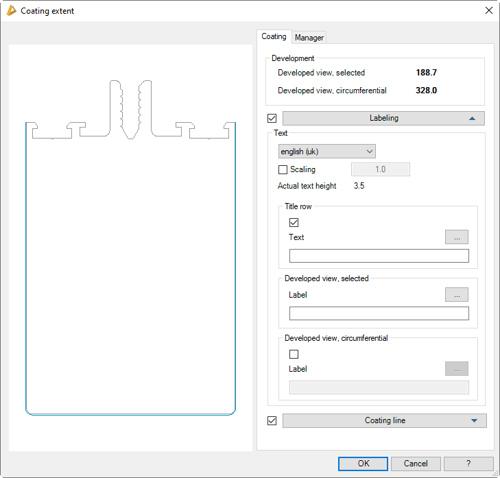 Define the side on which the coating line is to be drawn. Once you have done that, the Dialog box Coating extent is opened, where you can carry out further settings.