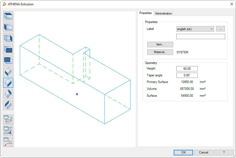Dialog box ATHENA Extrusion