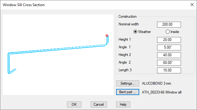 With this function you create a sheet metal section in the shape of a sheet window sill section in the current drawing.