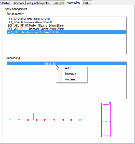 Here, you can assign assemblies to the bar assemblies of the facade element (processes or additional components) according to rules.