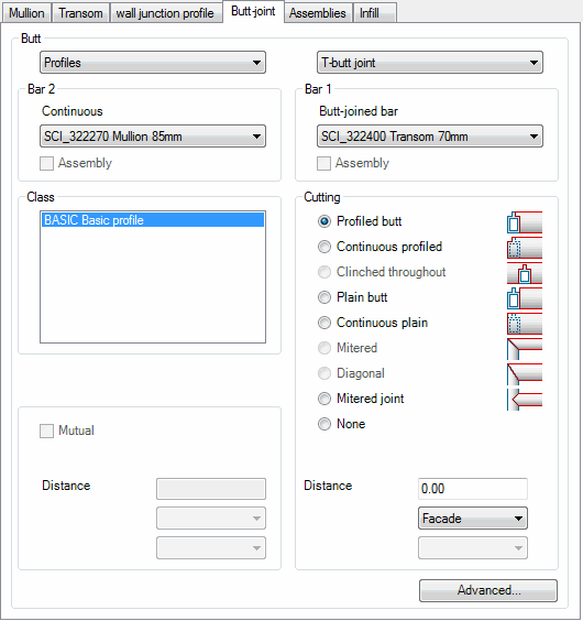 Defines the bar joints of the mullions and transoms in the junctions.