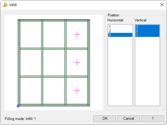 Shows the column numbers from left to right. Here, select the column(s) to which you want to apply infills.