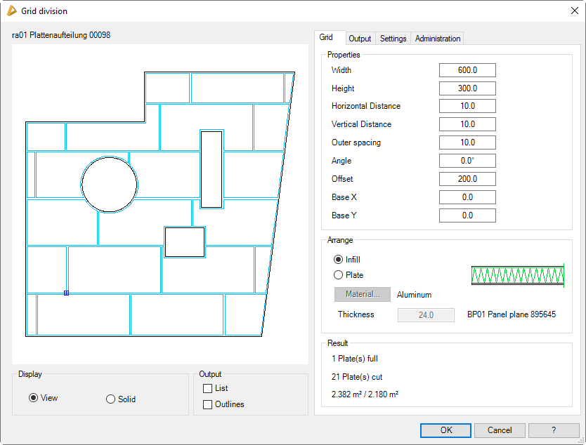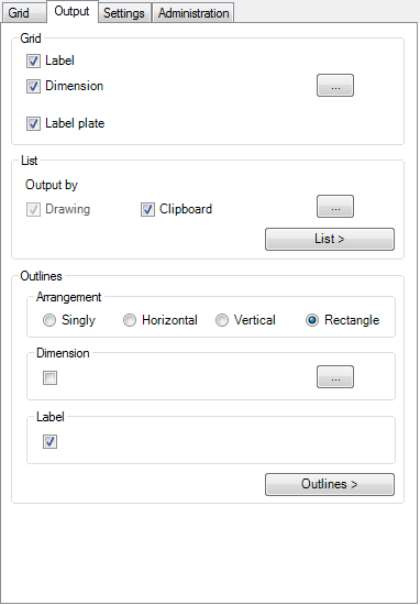 When you terminate the program with OK, the grid division and, if necessary, the list and outlines are created in the drawing.
