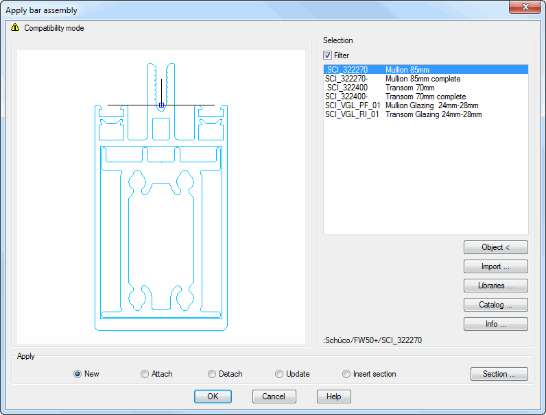 Dialog box Apply bar assembly in compatibility mode