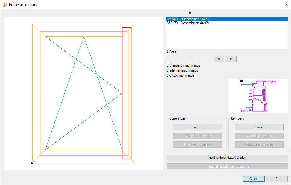 bars of LogiKal elements into the drawing. You can apply manual processes to these bars and then transfer them to LogiKal.