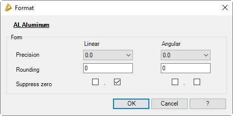 Defines the accuracy for linear figures and angles. You can select the desired precision in the pick list.
