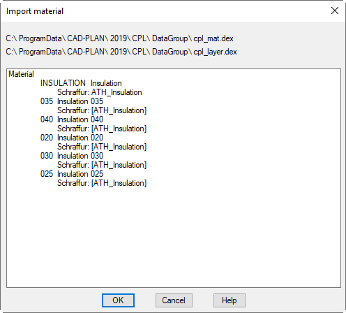 Dialog box Import material
