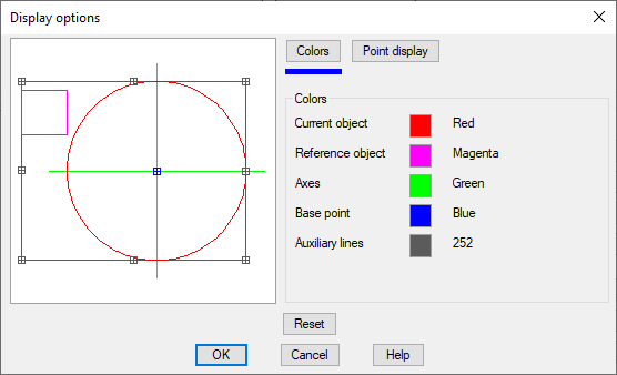 To change the color for an object type, click in the color field of the object to be changed. Then the AutoCAD dialog box Color is opened (refer to the AutoCAD documentation). The change is displayed in the graphics window.