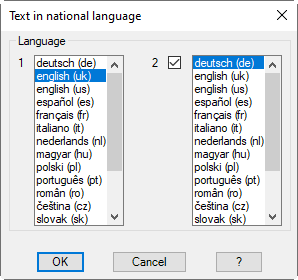 Defines the second language for the text. Activate the tick box to activate the bilingual features and select the second language.