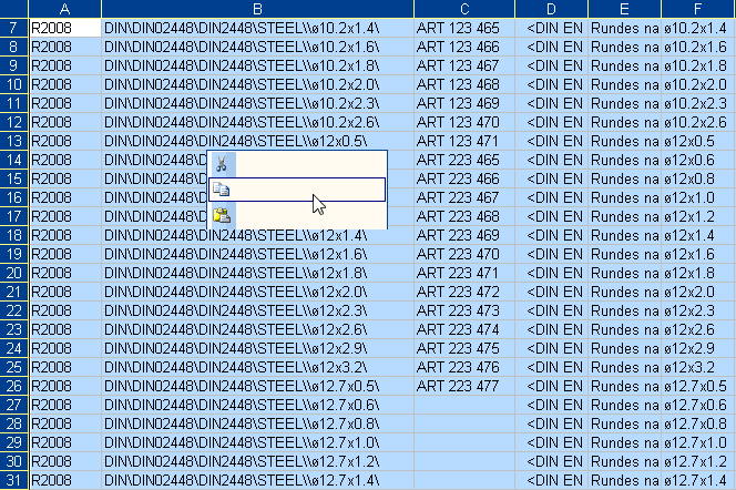 In your spread sheet mark the standard parts which you wish to import into ATHENA and copy them to the Windows clipboard (ATHENA only takes columns A and B into account during import). Then start the command Import items to import the new item numbers into ATHENA. ATHENA returns the number of items transferred.