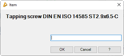 Write the item number in the input field provided. When you click OK, the setting for the current object is saved ATHENA and returns to the initial dialog box.