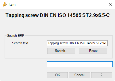 Opens the item data base and shows the items, filtered according to the search text. Here, you select an item and click the Adopt item button to use its item number in ATHENA. You will find further information on this in the E-R-Plus documentation.