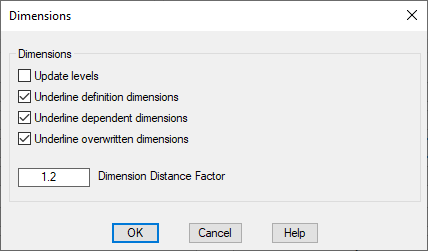If you deactivate the three tick boxes for underlining dimensions, differentiation between virtual and true dimensions is no longer possible. We recommend that these tick boxes are not deactivated!