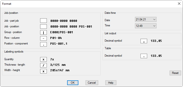 Defines the delimiting character between position number and component number. Default: Point: (.).