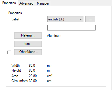 In the dialog box you will find on the left side the Display section with the dynamic preview. On the right side you can see the Operating section with the tabs Properties, Advanced and Manager.