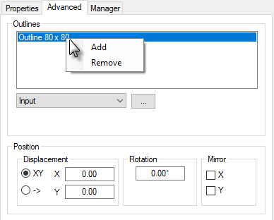 In the menu field you can select the type of outline. With the button [...] a dialog box opens depending on the selected type of outline or an input request appears. The following types are available: