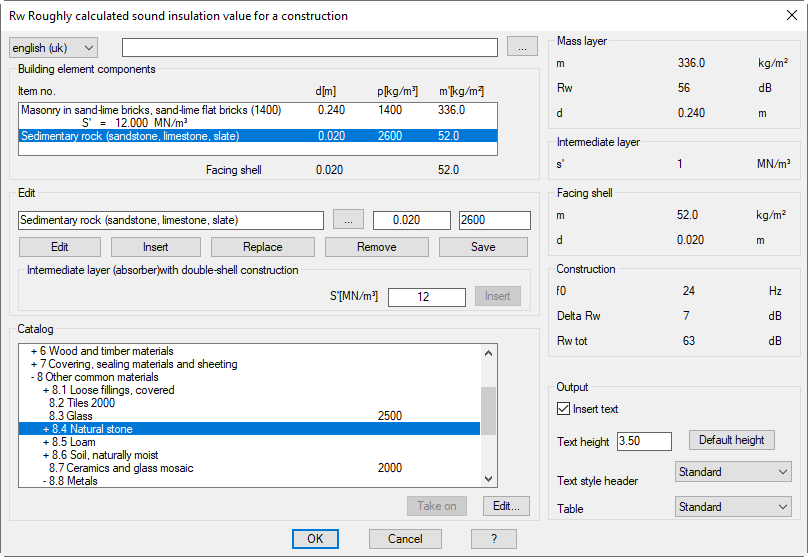 With this routine you can roughly determine the sound insulation factor for a construction.