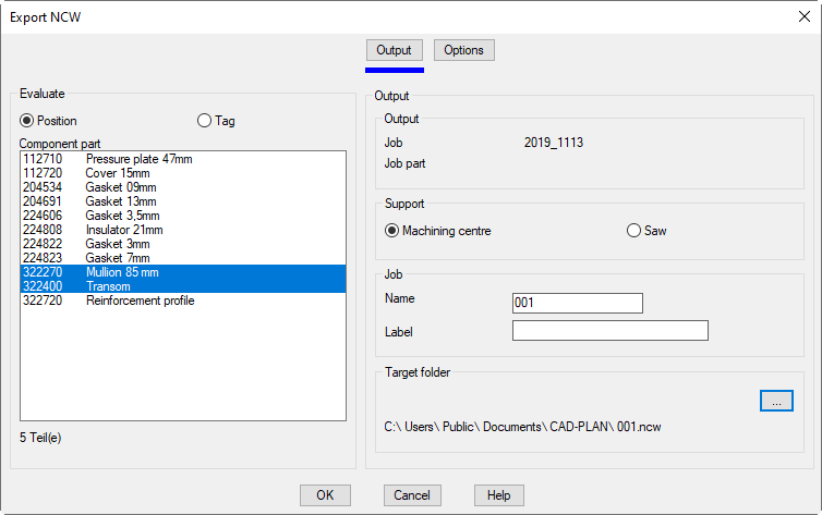 When you execute the command, the Dialog box Projects is displayed. Here, you select the job containing the bars which you want to export into the NCW format and then close the dialog box with OK. The Dialog box Export NCW follows: