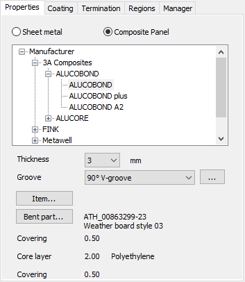 Defines the groove for folds on the composite panel. There are various grooves and shapes available depending on the type of panel.