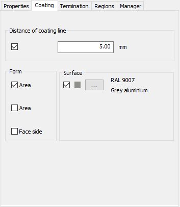 If you specify the coating lines for both areas, you can specify a dedicated surface for each area. For example, an RAL color for the upper side and an anti-drumming coating for the lower side of the sheet.
