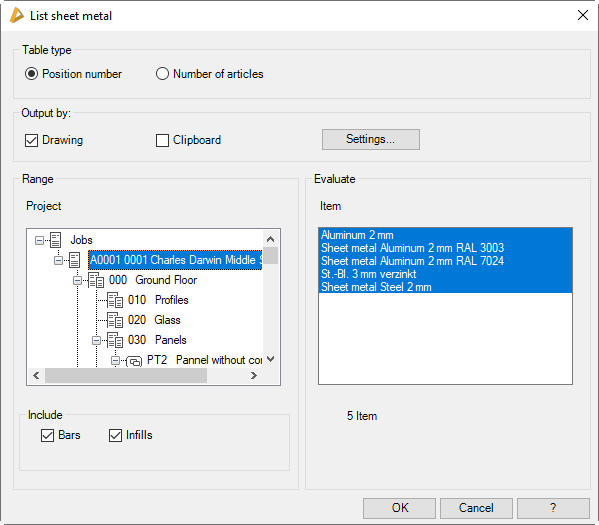 Note: This function produces lists of sheet metal parts. CAD-PLAN GmbH can in no way be held liable for the results of this function and any errors and losses arising from it.