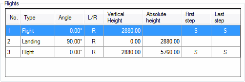 Step diagram > Inserts the step configuration of the current flight into the drawing. For this, the dialog box is temporarily closed and the following appears: