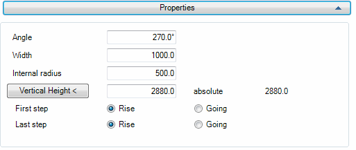 Sets a curved stairwell as default. The radius of the stairwell can be defined in the input field.