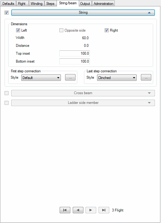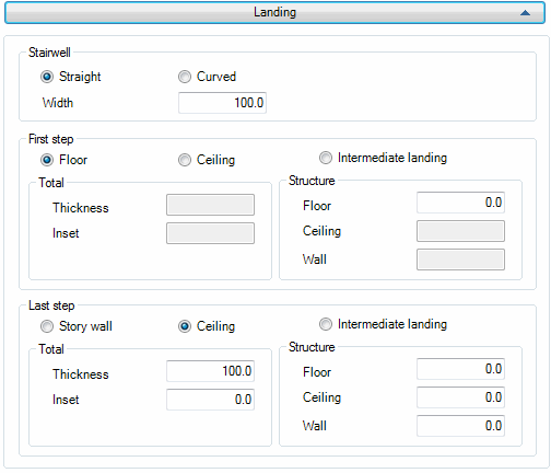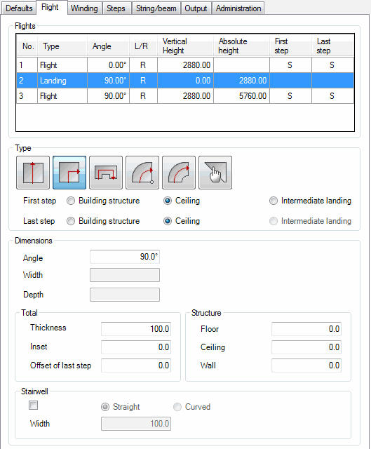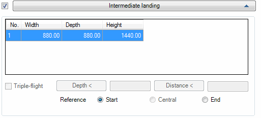 The width and depth of the landing depends, according to the type, on various parameters (e.g. width of the flight). In this case the dimensions are displayed, but cannot be changed.