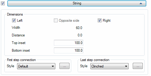 Depending on the default setting, here either the height of the string or the distance of the rear edge of the step to the lower edge of the string (bottom inset) is set.
