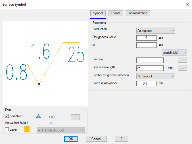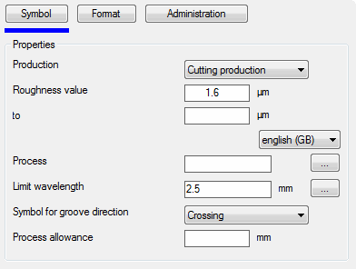 With this command you generate a symbol for stating the condition of surfaces. The standard DIN ISO 1302 is the basis for the symbols.