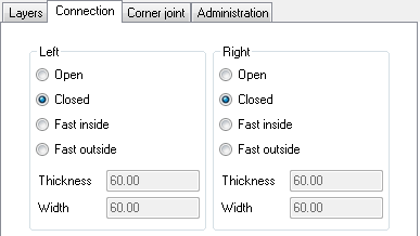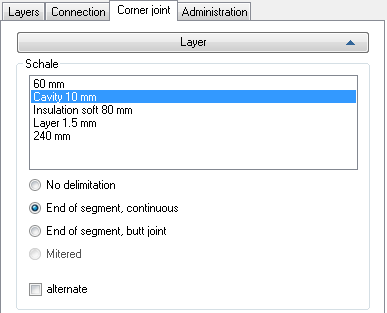 Specifies how the individual wall layers are joined in the corners. Select the layer from the list for which you would like to specify the corner joint.