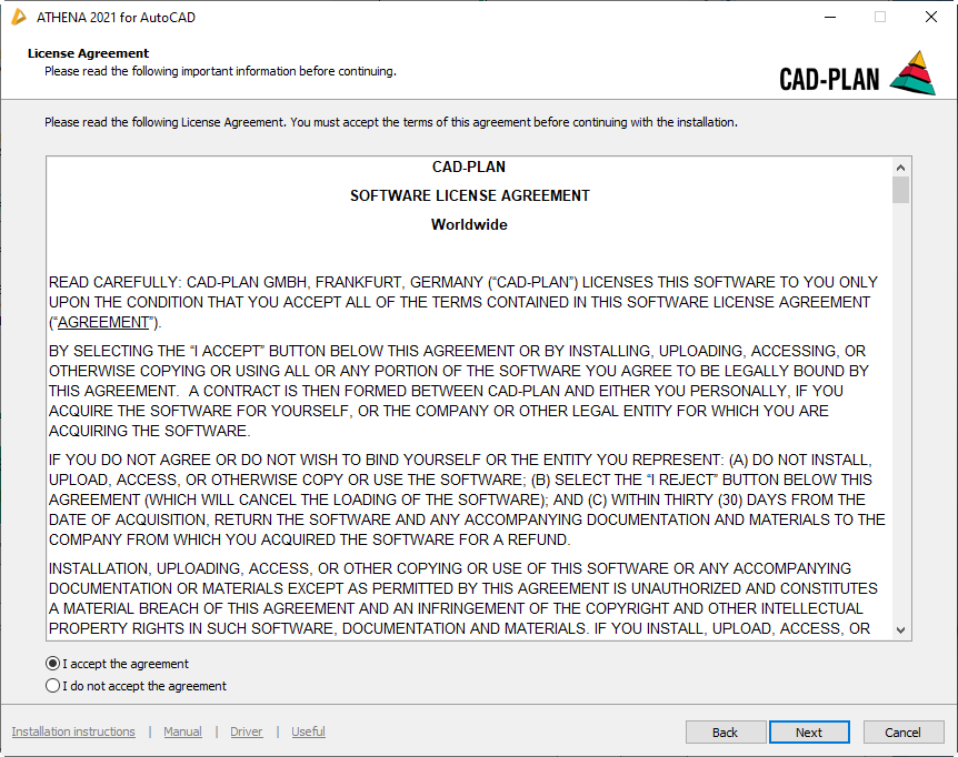 1. Start the ATHENA Installer (ath_installer.exe) that came with your installation package and follow the next steps.